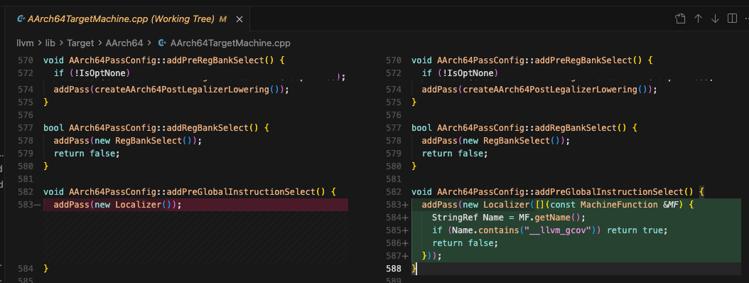 - 大规模项目编译时,bc到o代码生成阶段gcov相关的函数寄存器优化耗时极长,跳过相关步骤后构建耗时大致为不开插桩时的一倍